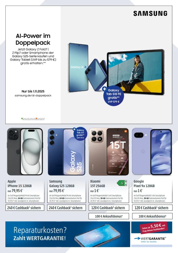 - Wi-Fi 6 (WLAN AX) bis 2.400 MBit/s + 1.200 MBit/s